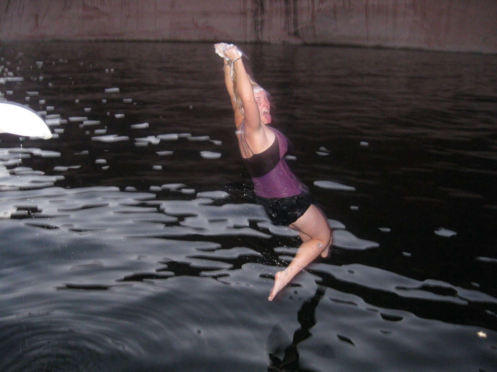 So, we played ultimate Spoons (where the spoons were in the water and we had to go off the slide and swim and fight to the death to get one). An accident waiting to happen right? Well Lindsey slipped and her foot went under the slide and her crotch got slammed. Ouch.